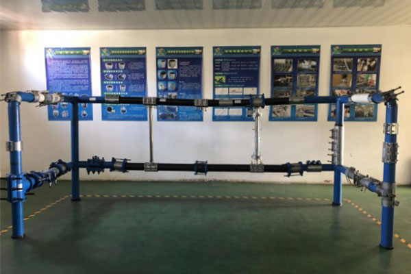 水司領導參(cān)觀樣品展示架,對於(yú)大連鑄鴻機械的産品能達到不同管材,不同外徑無縫對接的優良性能爲之贊歎。