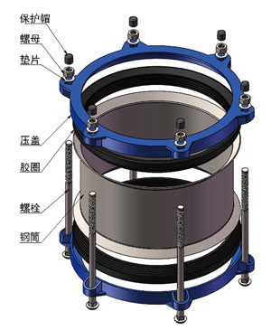 柔性多功能管道連接器不鏽鋼缸筒和球墨鑄鐵壓蓋(gài)具有優良的抗拉強度和防腐性,能夠适應安裝和整個使用周期中接頭所承受的負(fù)載強度。