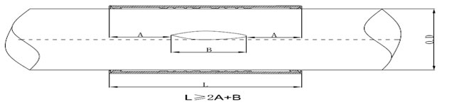 漏洞大小選配産品長度推薦方式: 確(què)定漏洞B處尺寸,A處不小於(yú)100mm ,修補器長度L