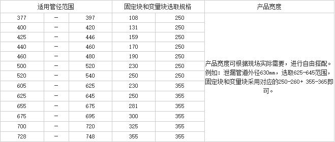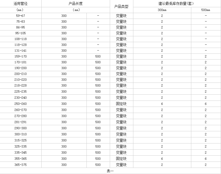 爲達到用戶應用範圍多樣化,按照我司推薦的上述庫存數量,既可以滿足各種管徑需求,又可以滿足修補長度不確定的要求,從而達到任何管徑均可随時從倉庫中提取,再也不會因爲庫存不足而發生焦急等待發貨的局面。