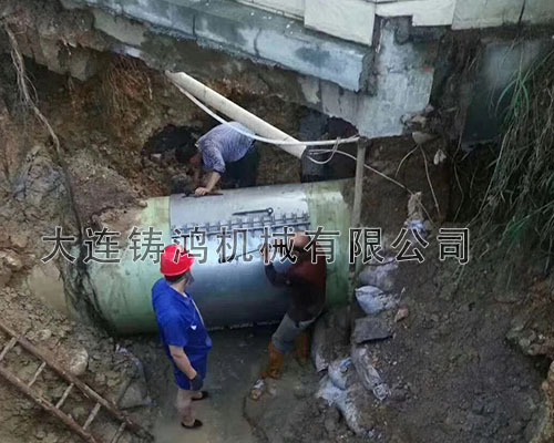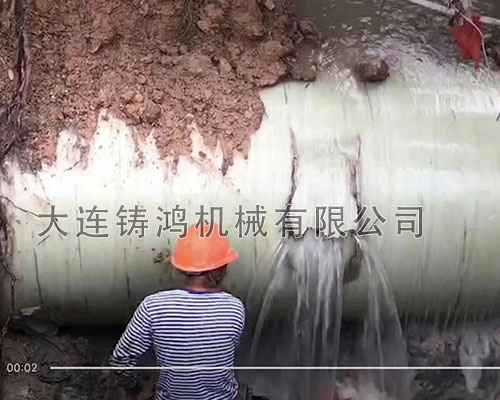福州連江水務DN1200玻璃鋼夾砂管發生洩漏,洩漏處管段空間狹小,施工極爲困難,由於(yú)17級台風“瑪利亞”即将登陸,搶修管道時間緊任務重,採(cǎi)用普通的修補方式需要48小時以上,工作人員採(cǎi)用:“鑄鴻”闆式修補器進行快速帶壓堵漏。