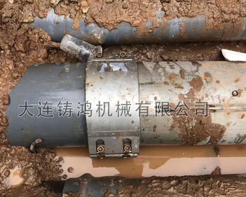 廣東佛山施工現場非标280管中間發生斷裂,由於(yú)漏點較大,修複起來較爲困難,施工人員決定切斷破損管處採用一段新管進行連接,由於(yú)備貨庫存裏沒有相同的管材,於(yú)是用瞭(le)一段鋼管,使用“鑄鴻”雙卡管道連接器進行快速連接。